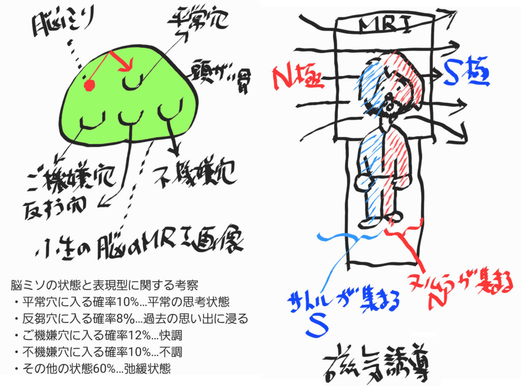 ・強磁場の中に20分いたので身体中の’Nunomura’と’Satoru’が磁気誘導で分離したようだ(右図)